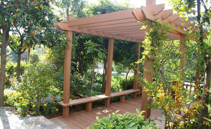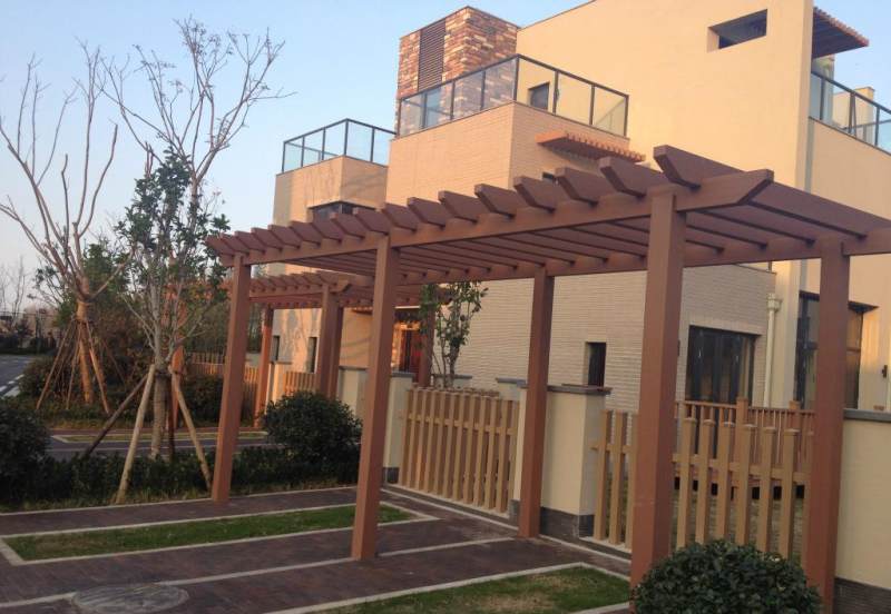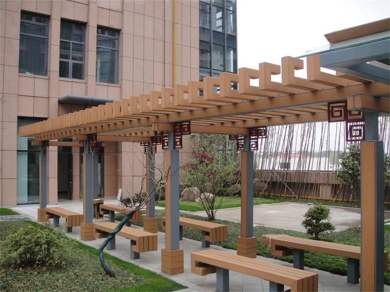 木塑户外材料越来越多的用在园林工程,包括木塑廊架、木塑凉亭等等,它突破性地解决了木塑外表颜色单调的问题,使木塑型材表面具有色彩丰富的仿真木纹效果,一改冰冷的金属表面效果,以一种自然、高贵华丽的木纹外观展现在世人面前,从而增强了装饰效果。